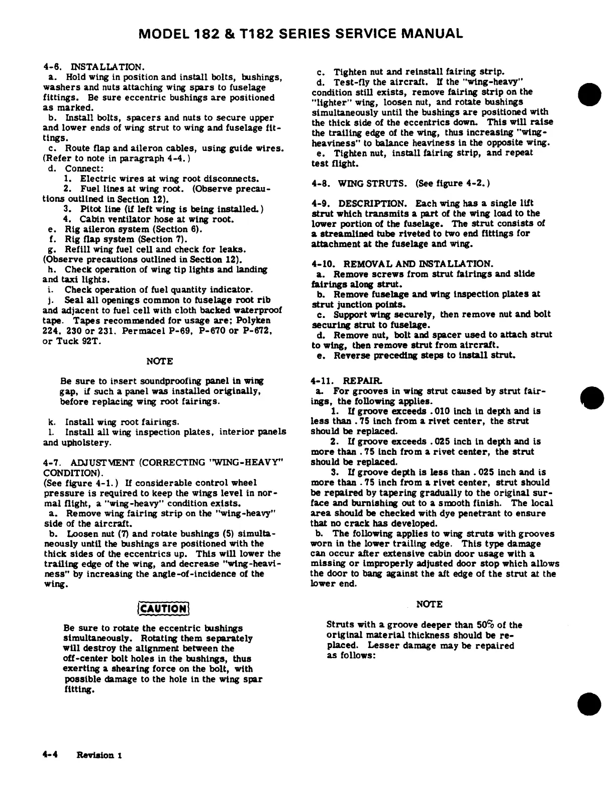 Cessna 182 1978 - Adjustment (Correcting Wing-Heavy Condition); Wing Struts