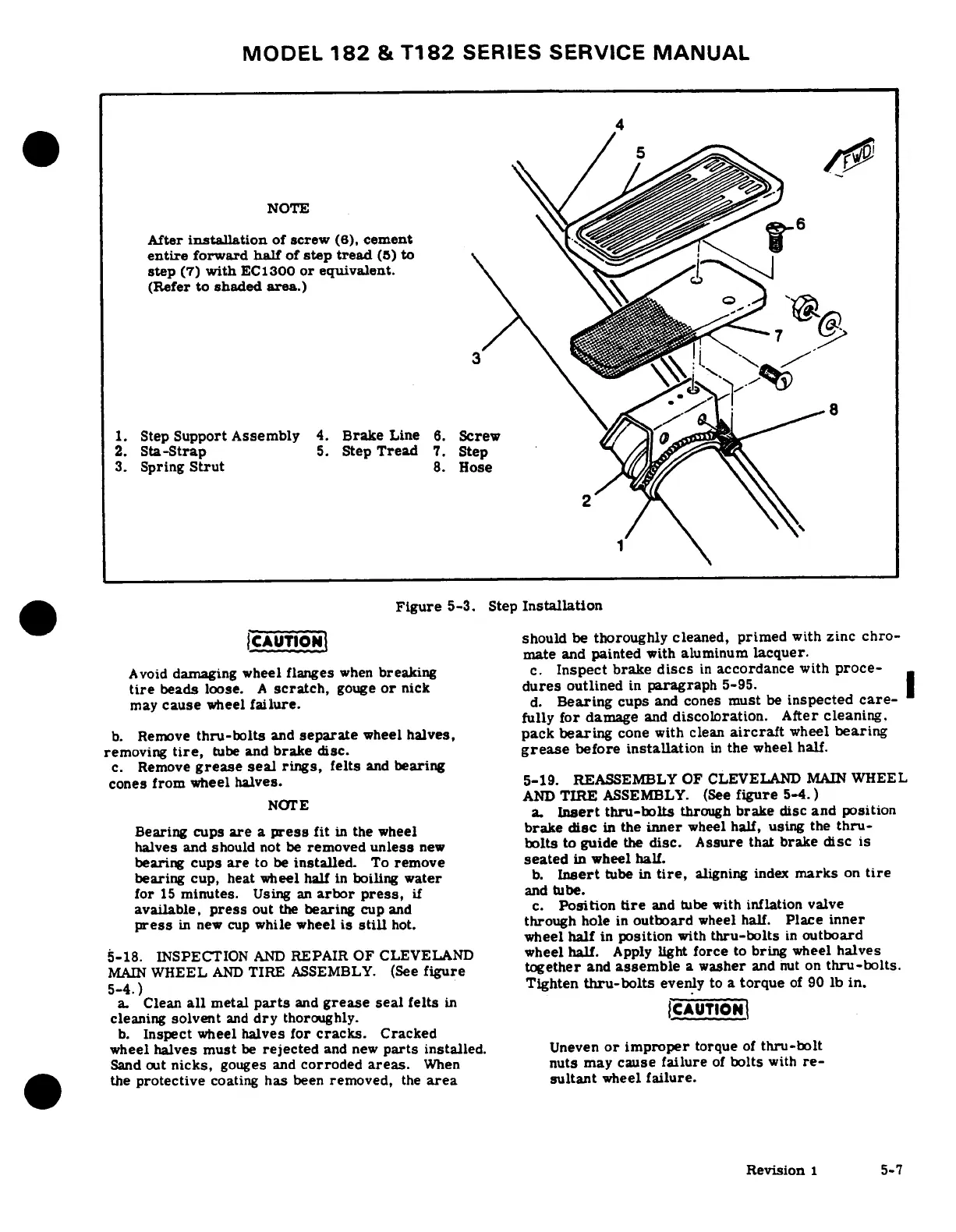 Cessna 182 1978 - Inspection and Repair of Cleveland Main Wheel and Tire Assembly; Reassembly of Cleveland Main Wheel and Tire Assembly; Step Installation