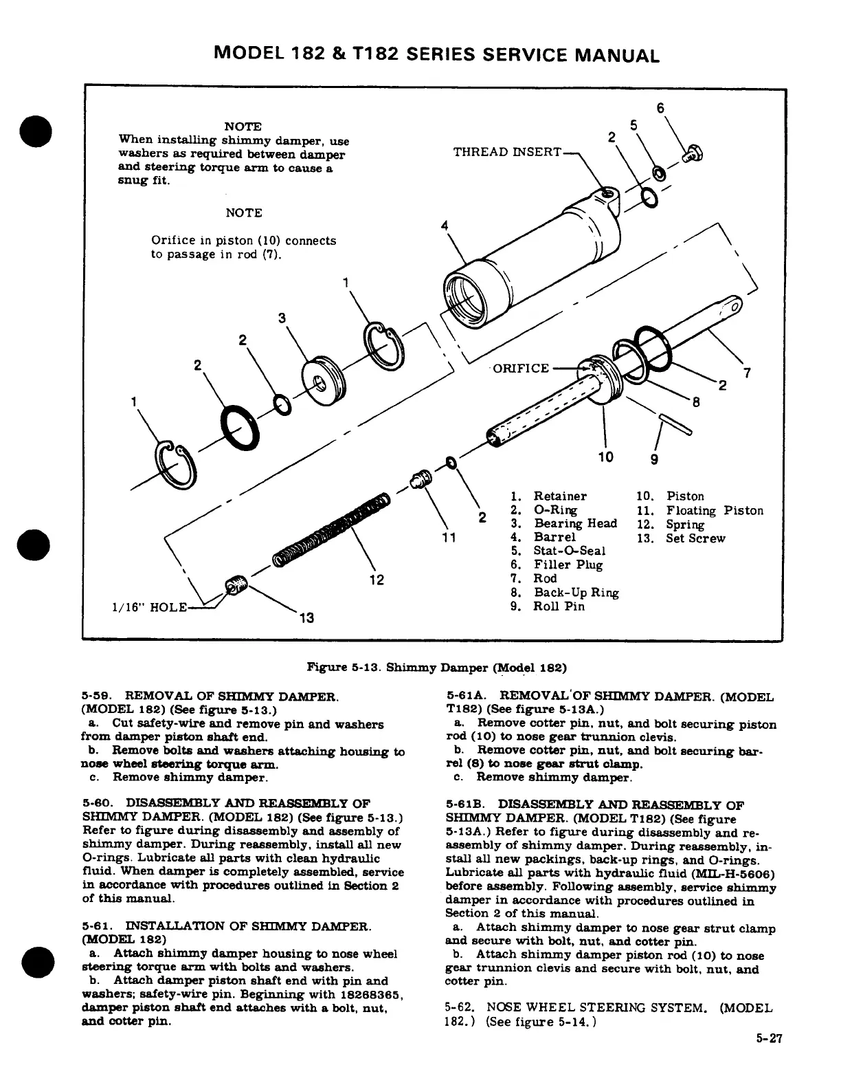 Cessna 182 1978 - Nose Wheel Steering System; Installation of Shimmy Damper; Disassembly and Reassembly of Shimmy Damper; Removal of Shimmy Damper