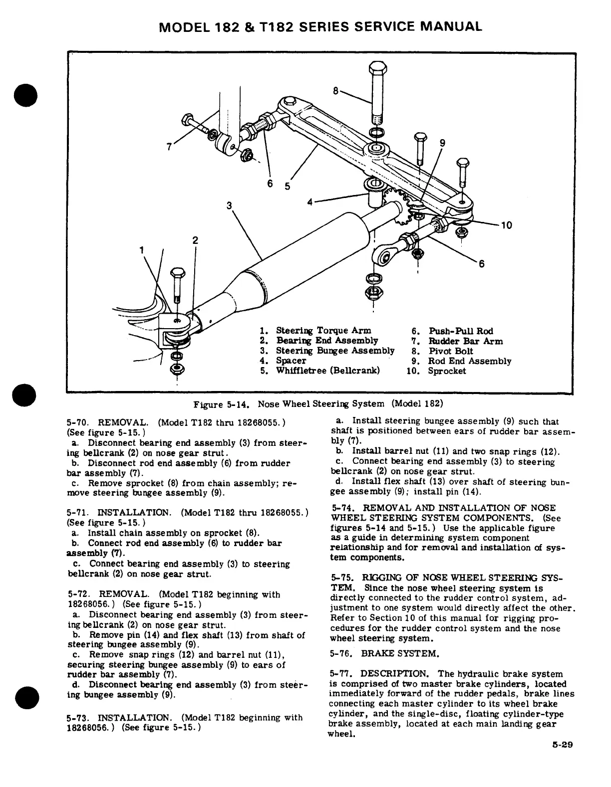 Cessna 182 1978 - Removal and Installation of Nose Wheel Steering System Components; Rigging of Nose Wheel Steering System; Brake System