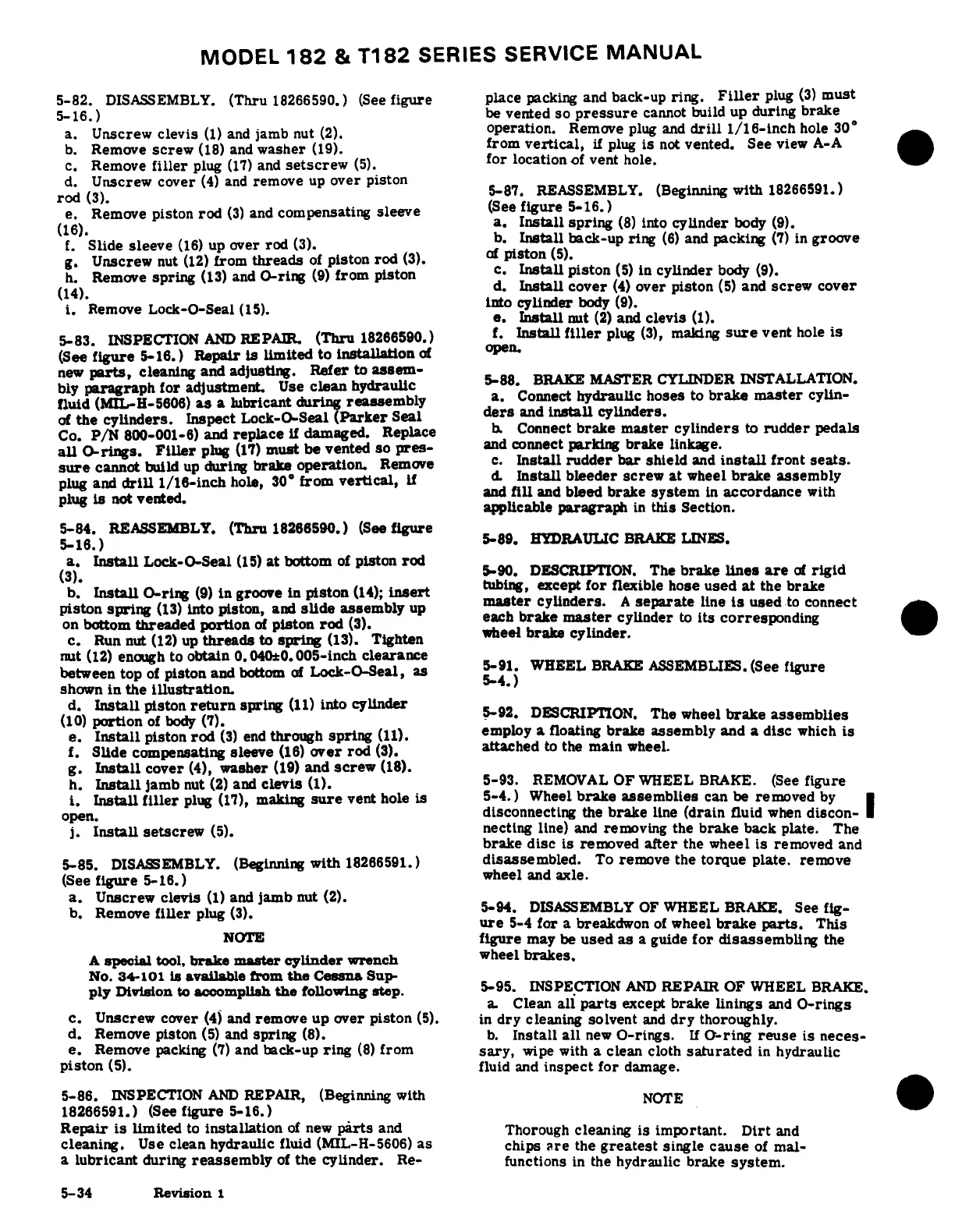 Cessna 182 1978 - Removal;Disassembly of Wheel Brake; Brake Master Cylinder Installation; Wheel Brake Assemblies; Hydraulic Brake Lines