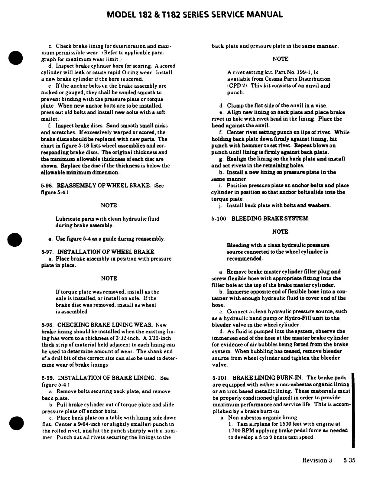 Cessna 182 1978 - Reassembly;Installation of Wheel Brake; Checking Brake Lining Wear; Installation of Brake Lining; Bleeding Brake System