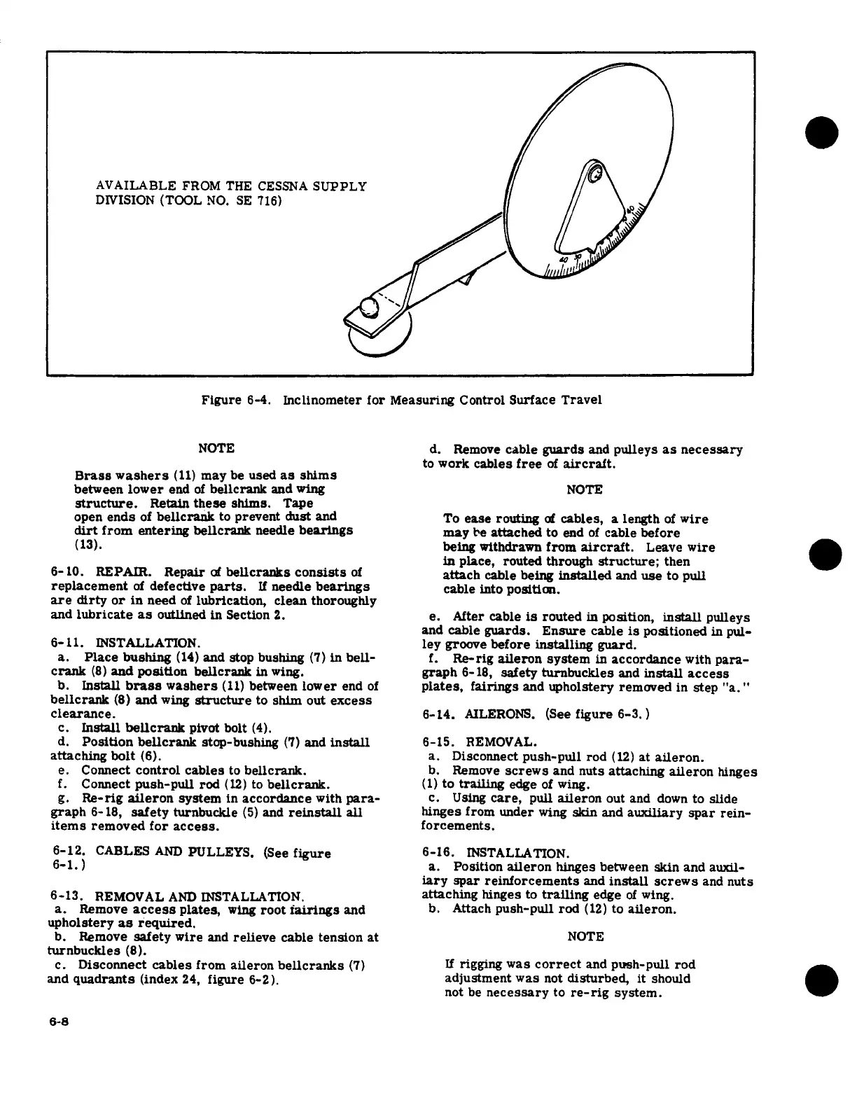 Cessna 182 1978 - Inclinometer for Measuring Control Surface Travel; Ailerons; Cables and Pulleys
