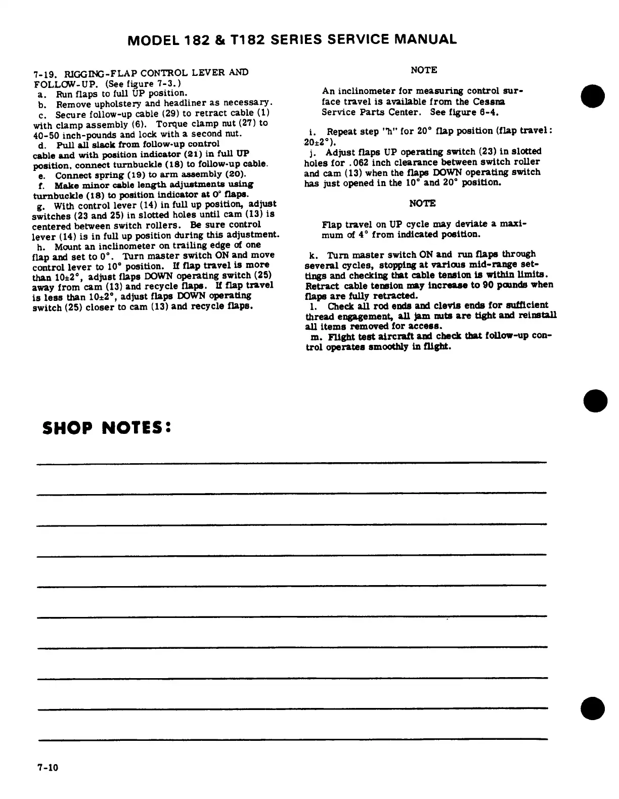 Cessna 182 1978 - Rigging-Flap Control Lever and Follow-Up