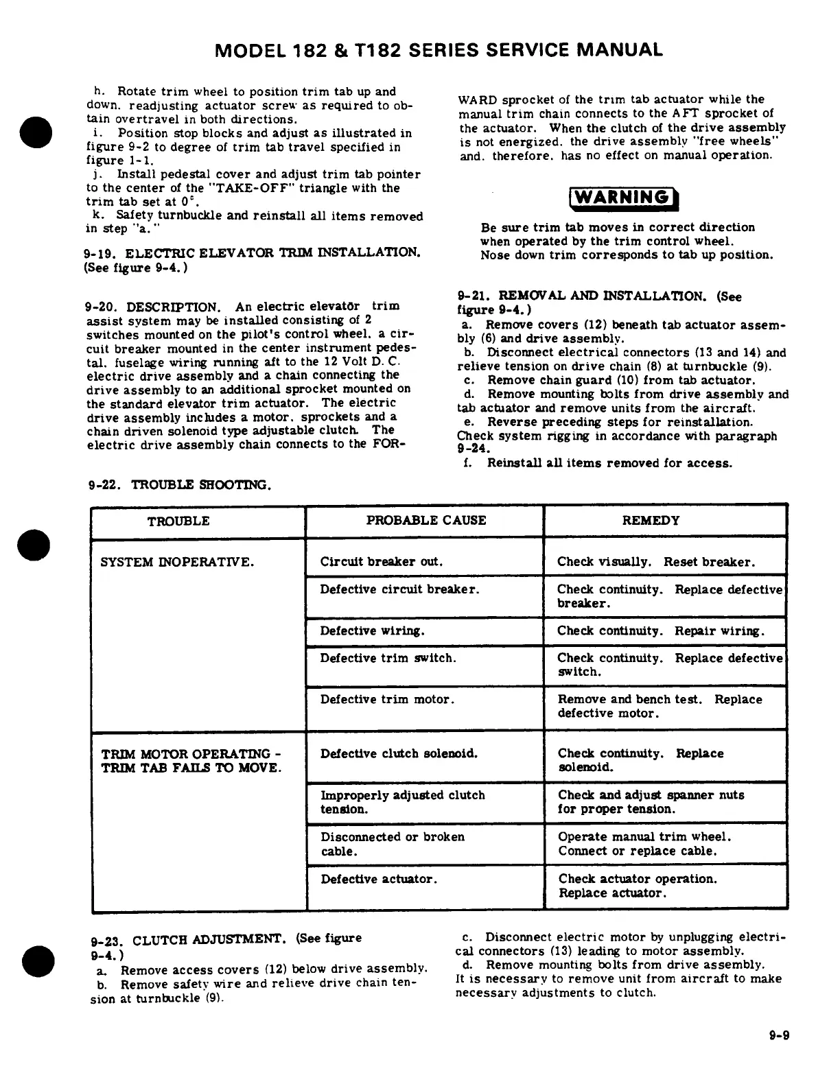 Cessna 182 1978 - Electric Elevator Trim Installation; Clutch Adjustment
