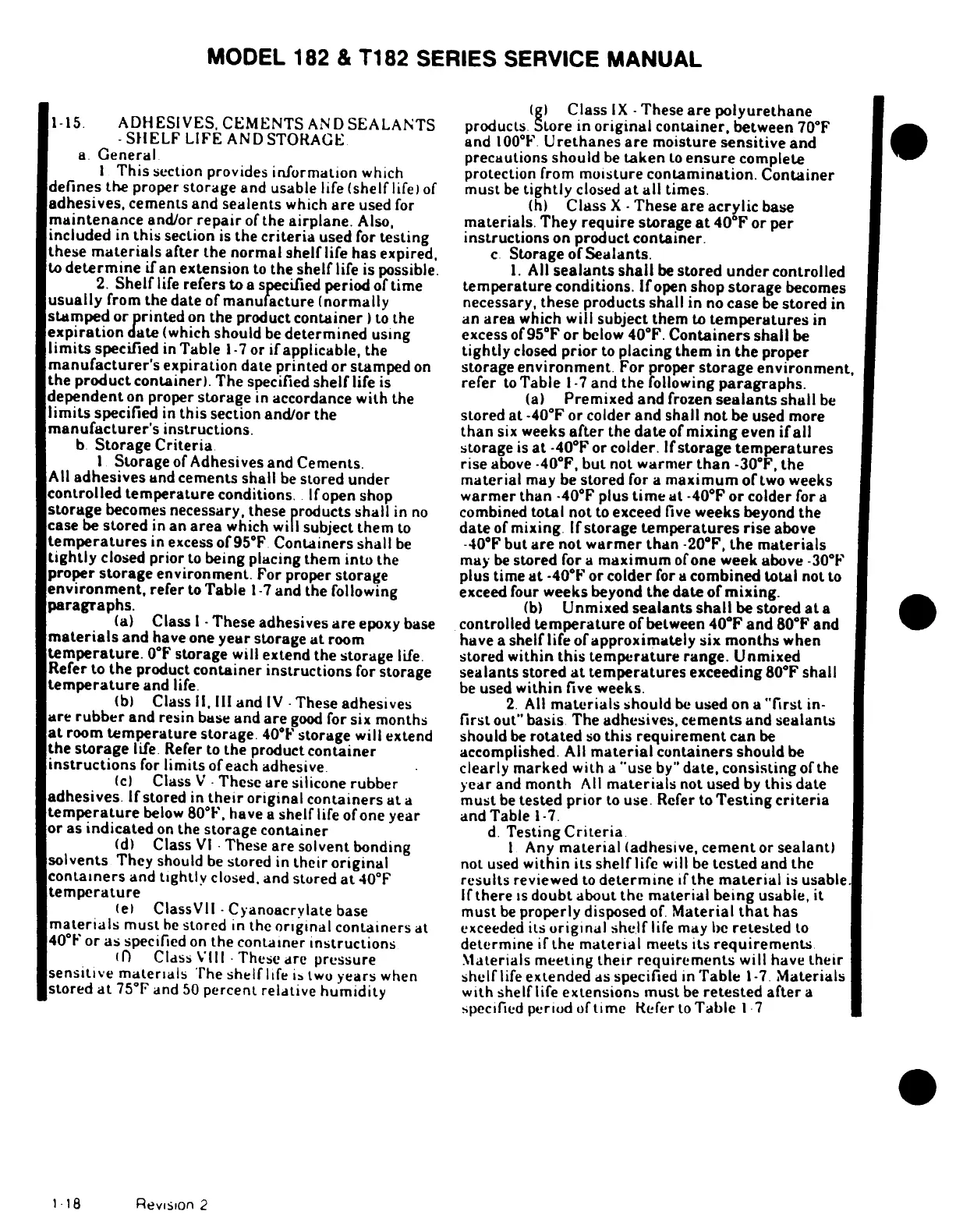 Cessna 182 1978 - Testing Criteria; Adhesives, Cements and Sealants Shelf Life and Storage; Storage Criteria
