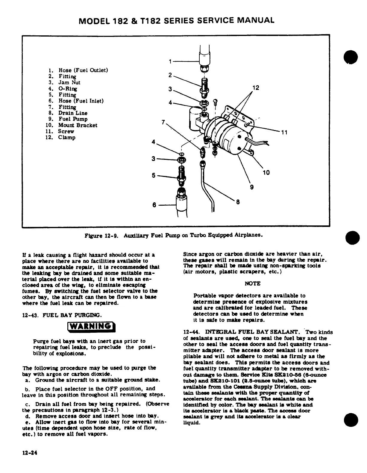 Cessna 182 1978 - Auxiliary Fuel Pump on Turbo Equipped Airplanes; Fuel Bay Purging; Integral Fuel Bay Sealant
