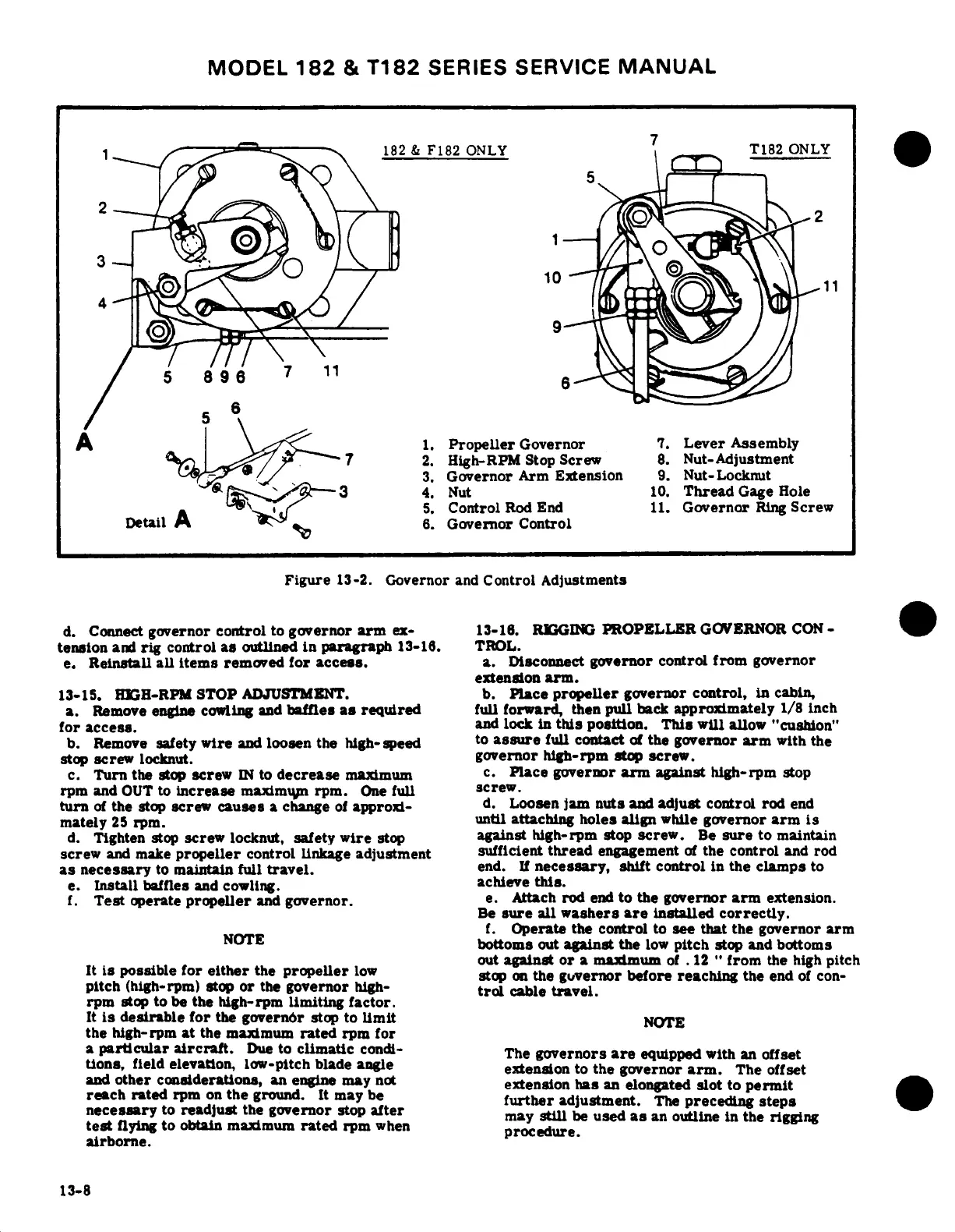 Cessna 182 1978 - Governor and Control Adjustments; High-RPM Stop Adjustment; Rigging Propeller Governor Control