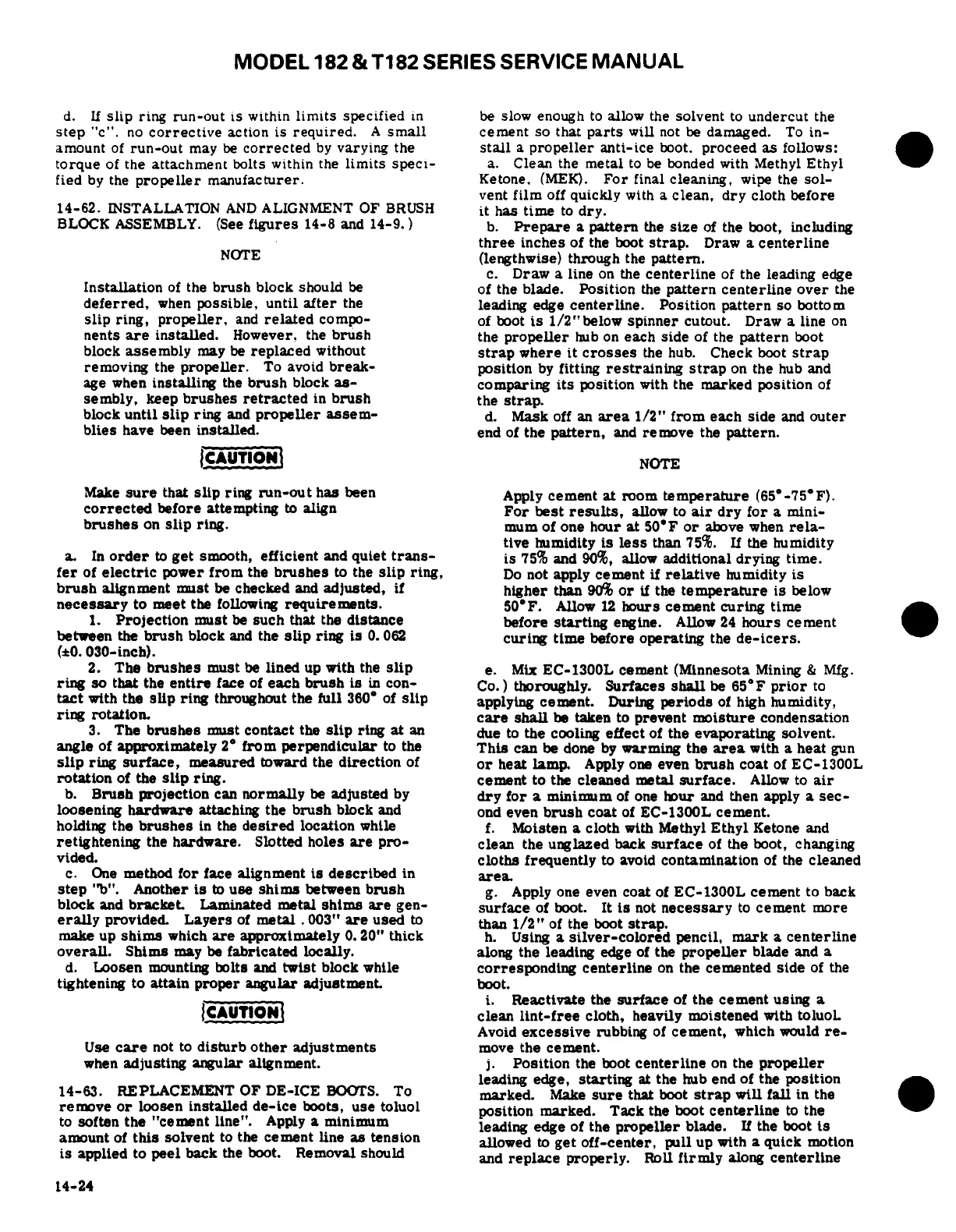 Cessna 182 1978 - Installation and Alignment of Brush Block Assembly; Replacement of De-Ice Boots