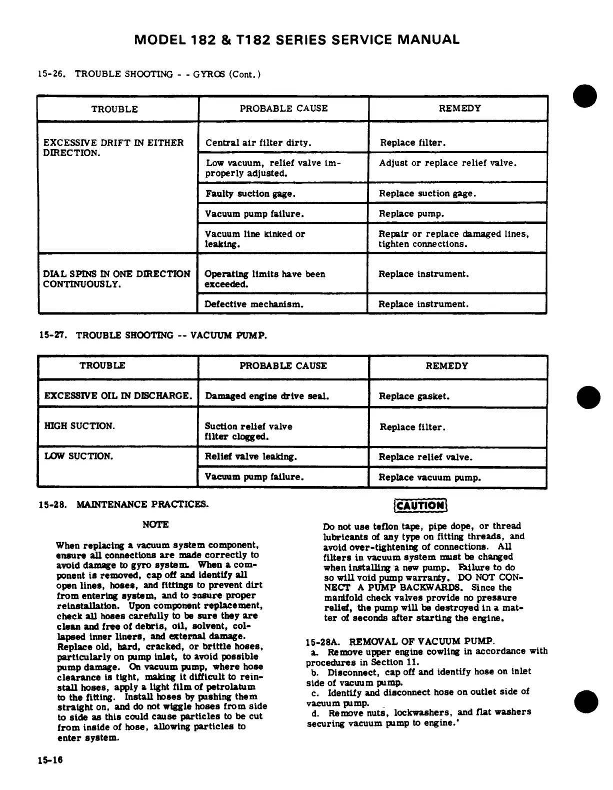 Cessna 182 1978 - Maintenance Practices; Removal of Vacuum Pump; Troubleshooting - Gyros; Troubleshooting - Vacuum Pump