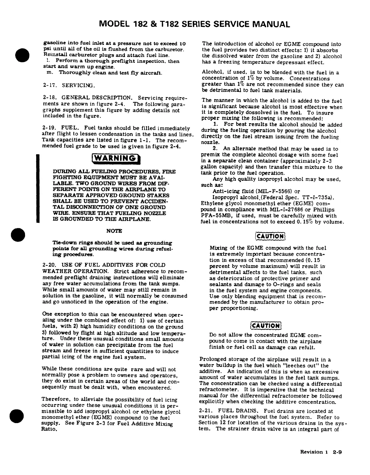 Cessna 182 1978 - General Drscription; Fuel; Use of Fuel Additives for Cold Weather Operation; Fuel Drains