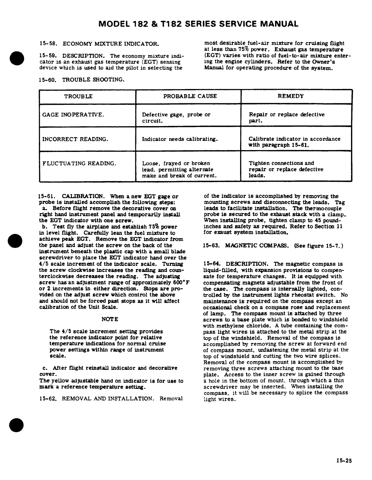 Cessna 182 1978 - Calibration; Magnetic Compass