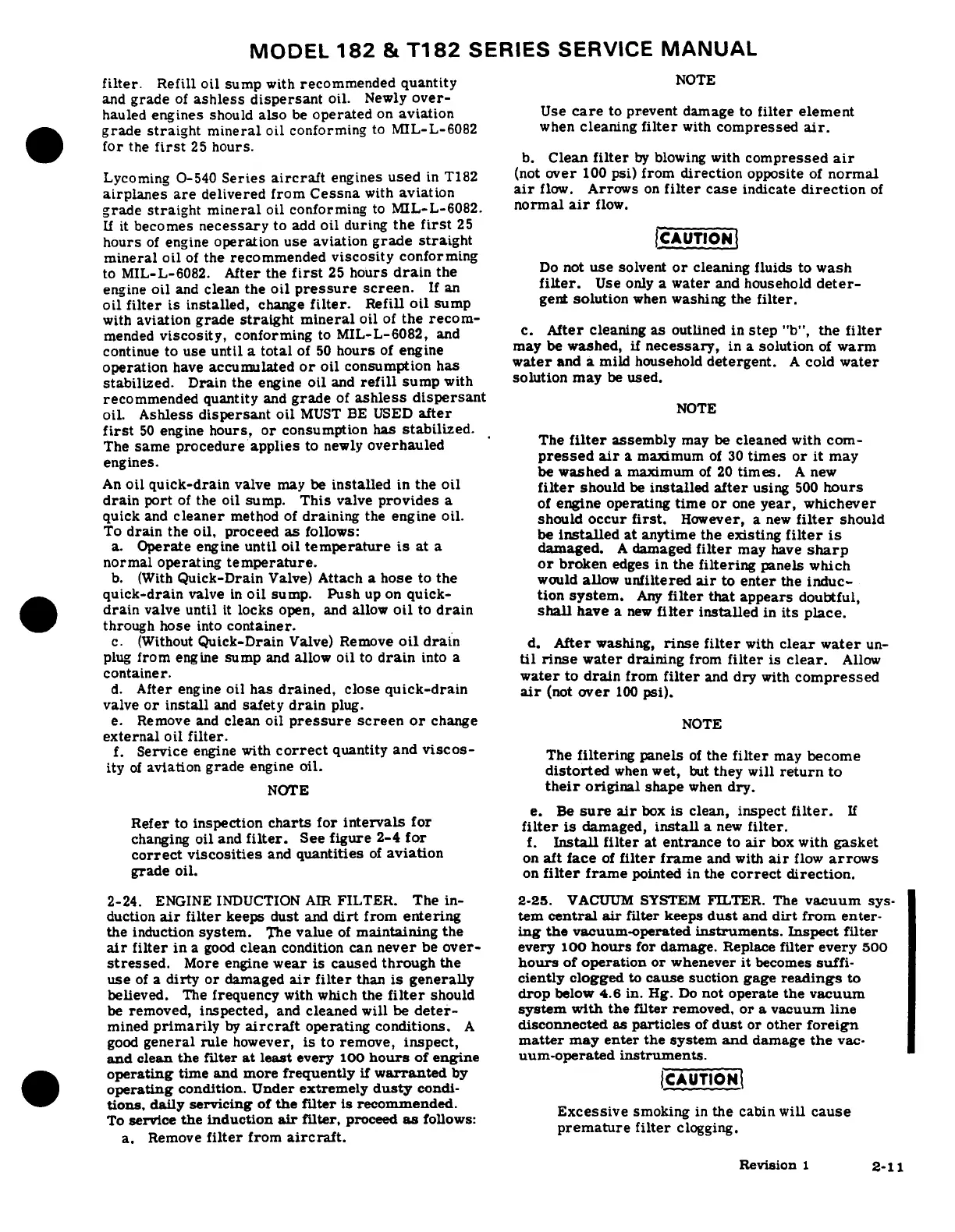 Cessna 182 1978 - Engine Induction Air Filter; Vacuum System Filter