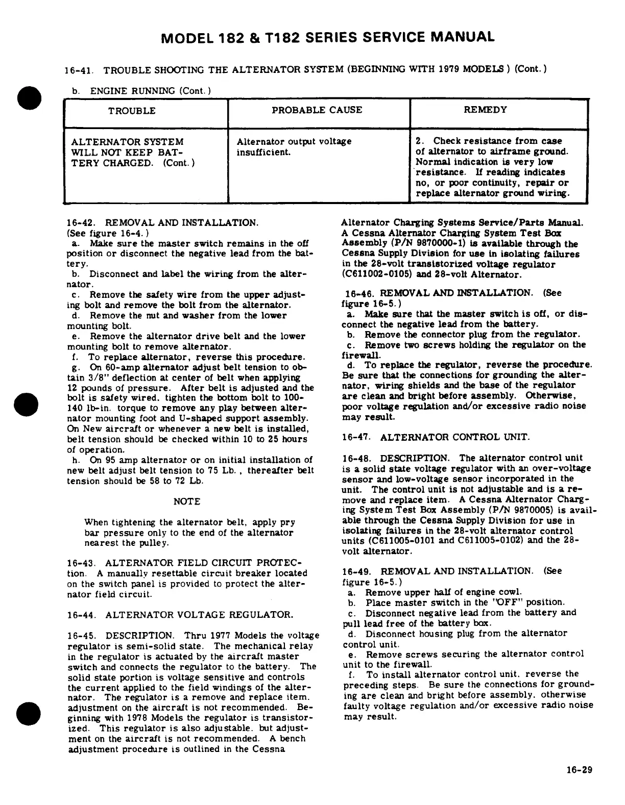 Cessna 182 1978 - Alternator Control Unit; Alternator Field Circuit Protection; Alternator Voltage Regulator
