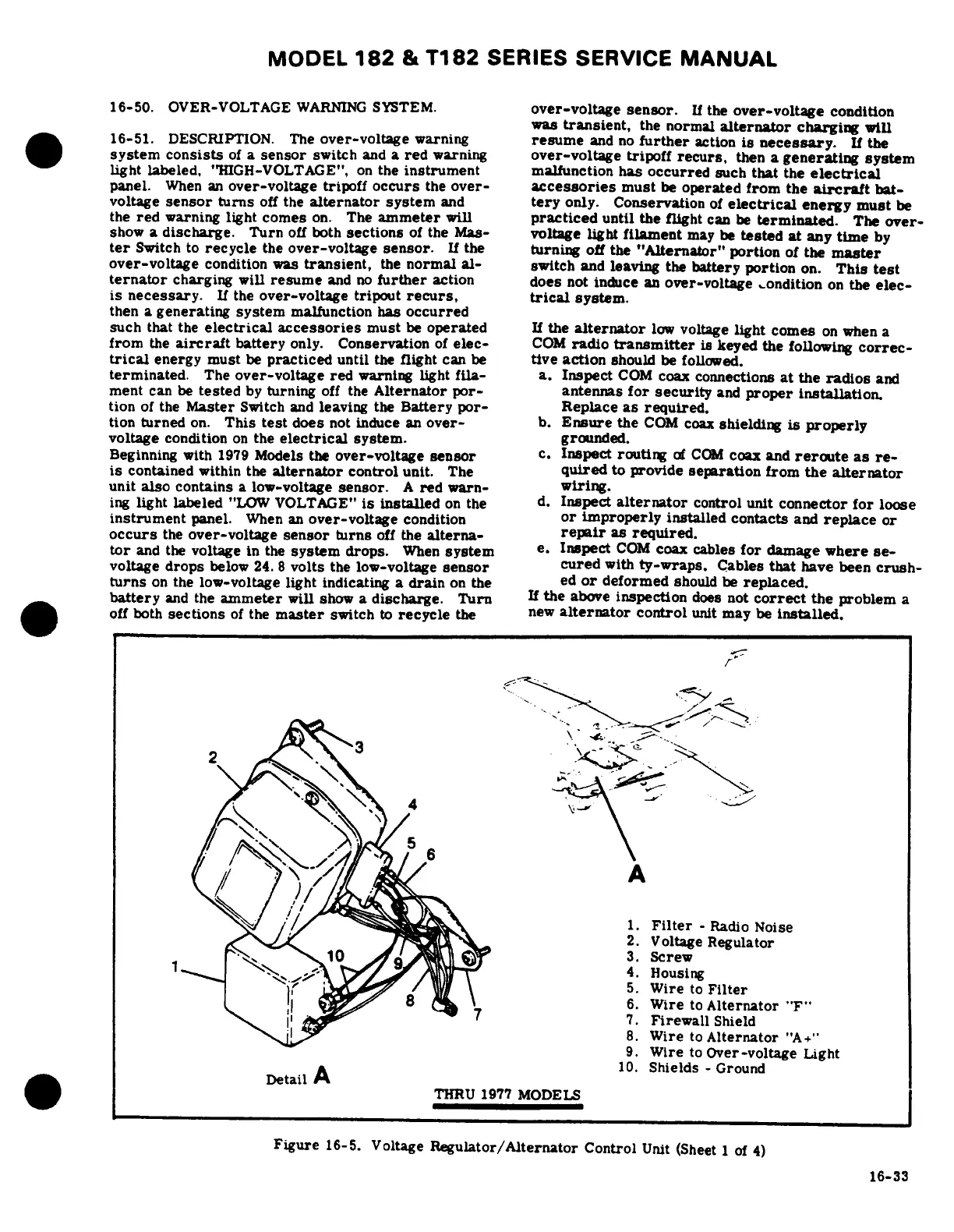 Cessna 182 1978 - Over-Voltage Warning System; Voltage Regulator;Alternator Control Unit