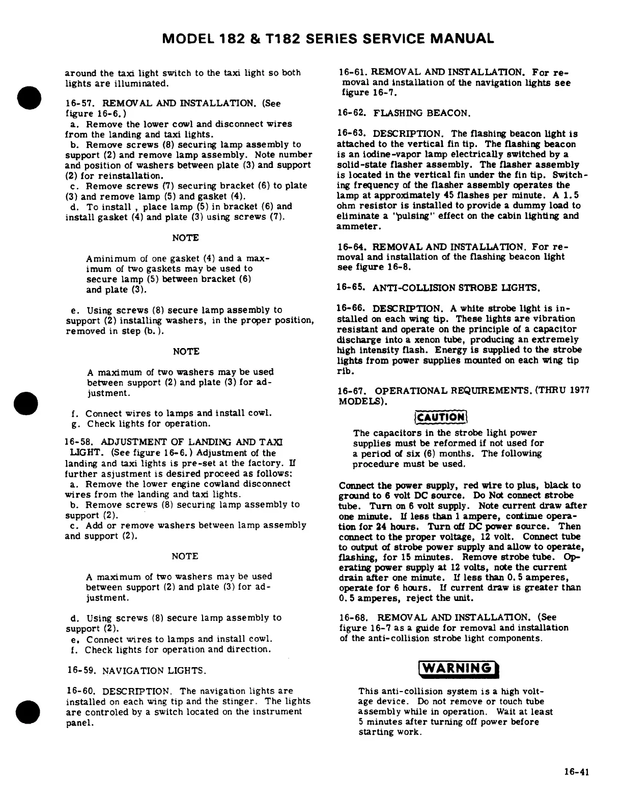 Cessna 182 1978 - Adjustment of Landing and Taxi Light; Anti-Collision Strobe Lights; Flashing Beacon; Navigation Lights