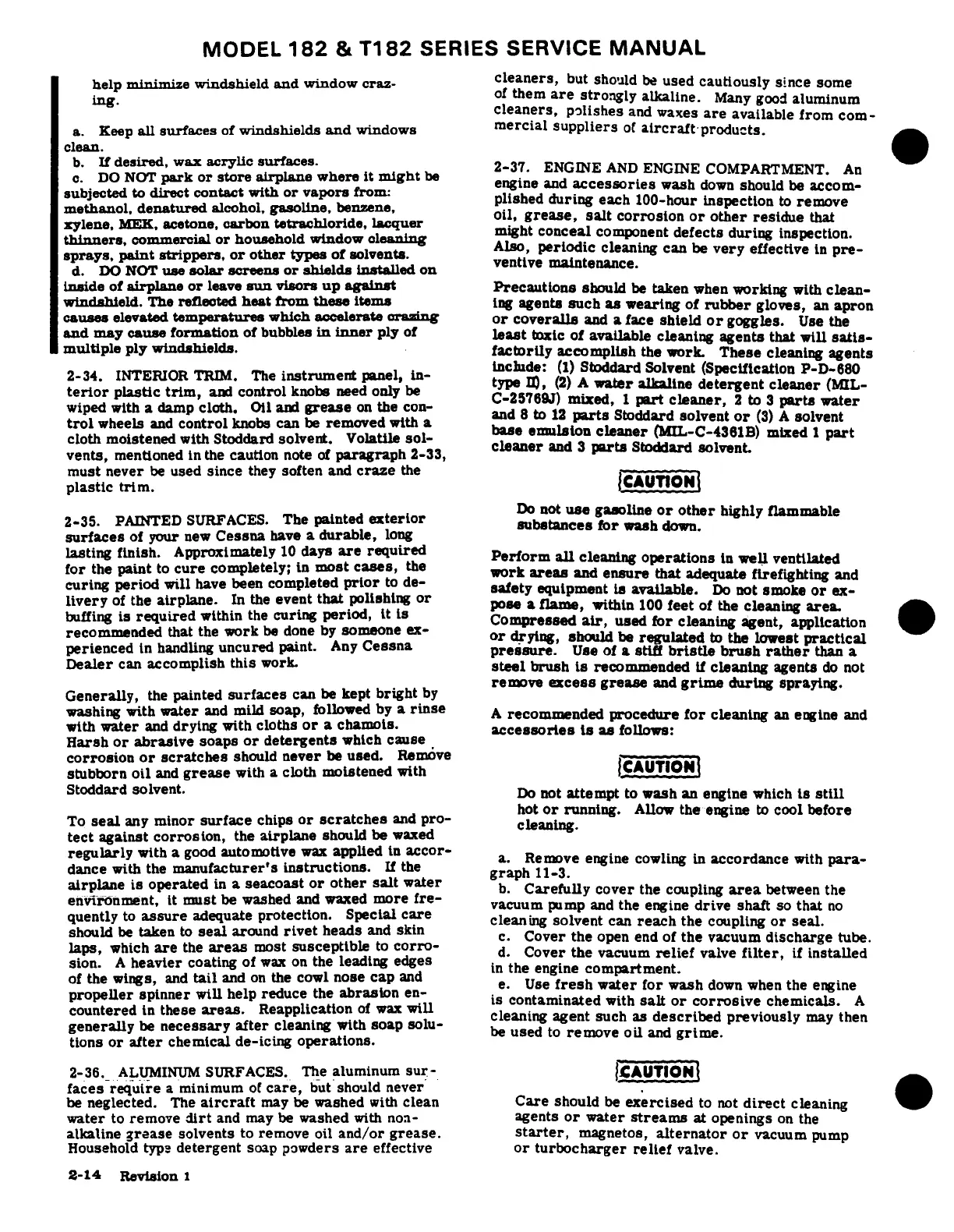 Cessna 182 1978 - Interior Trim; Painted Surfaces; Aluminium Surfaces; Engine and Engine Compartment