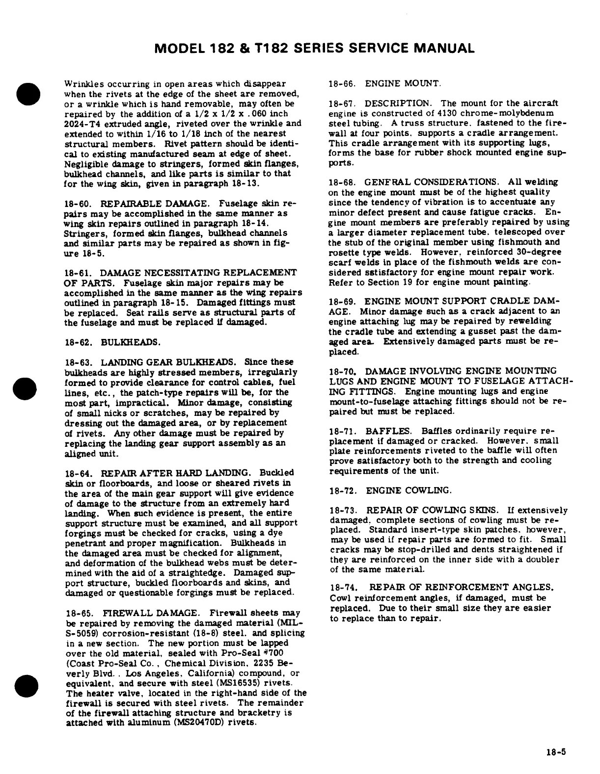 Cessna 182 1978 - Bulkheads; Repair after Hard Landing; Firewall Damage; Engine Mount Support Cradle Damage