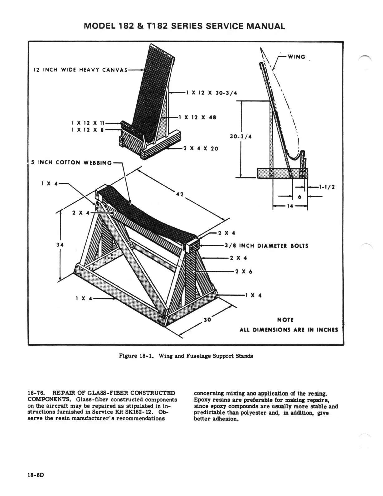 Cessna 182 1978 - Wing and Fuselage Support Stands; Repair of Glass-Fiber Constructed Components