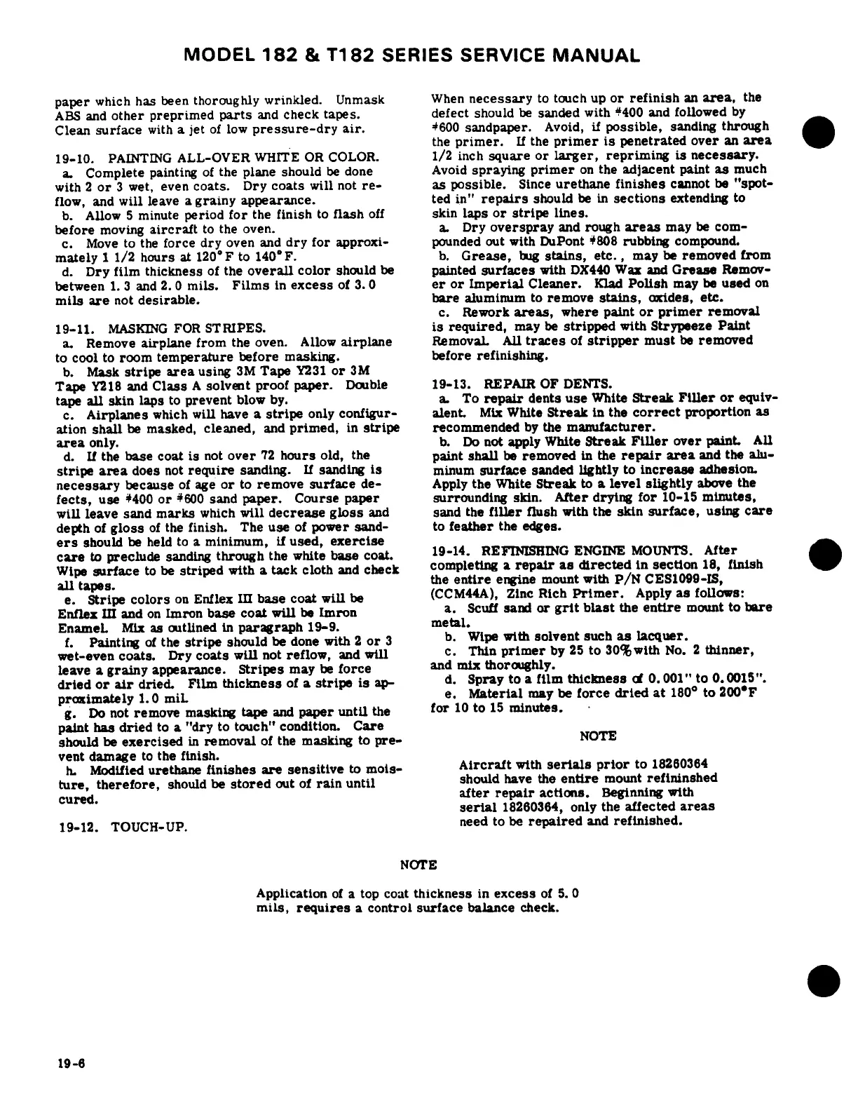 Cessna 182 1978 - Repair of Dents; Refinishing Engine Mounts; Touch-Up; Masking for Stripes