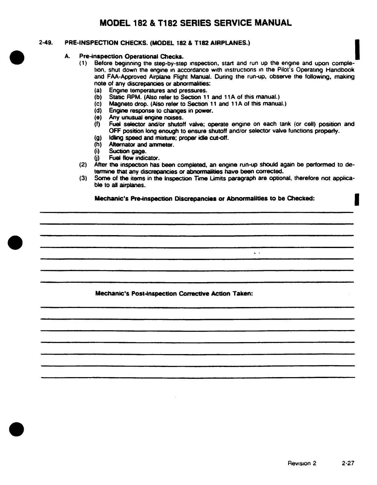 Cessna 182 1978 - Pre-Inspection Operational Checks