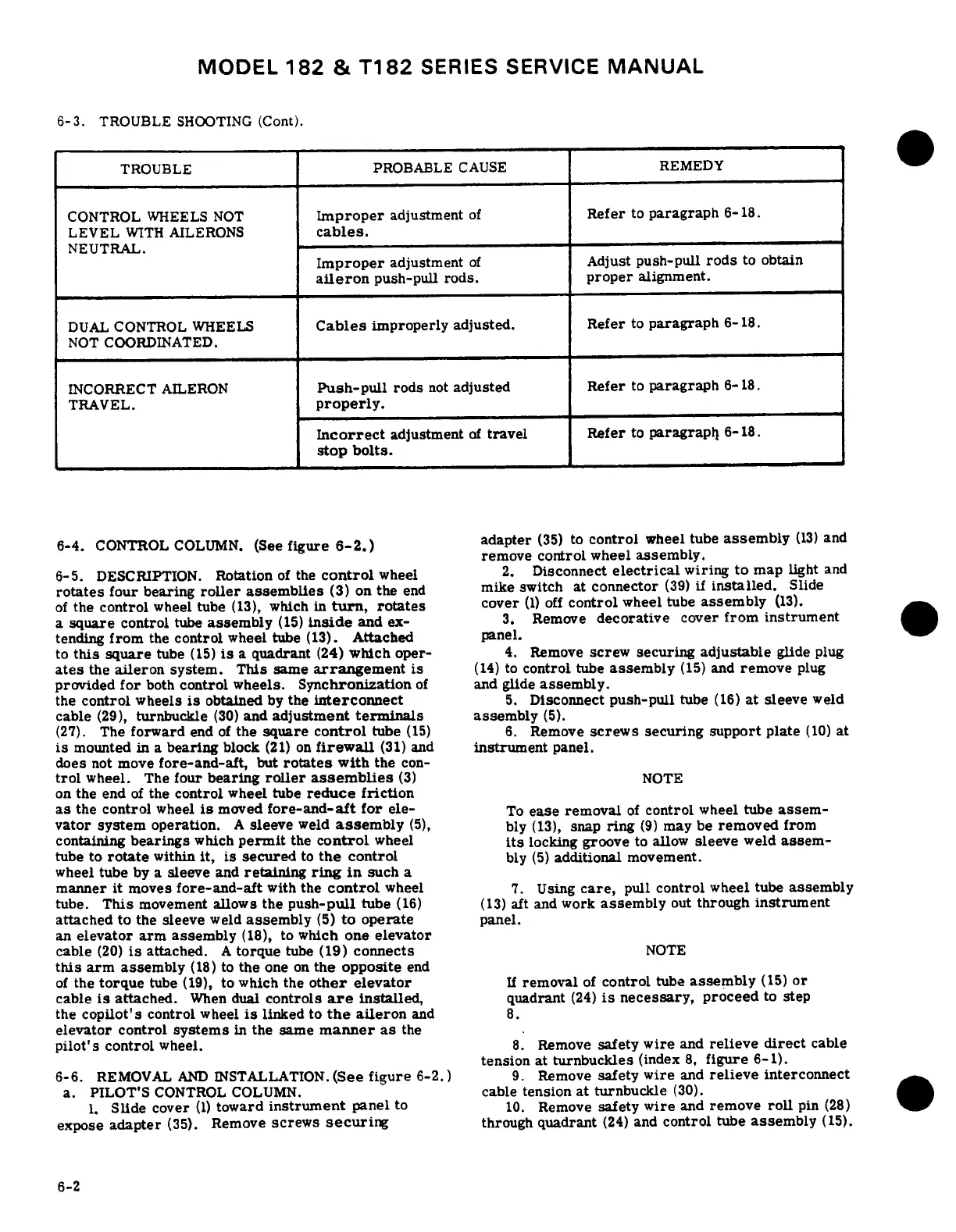Cessna 182 1980 - Control Column; Pilots Control Column