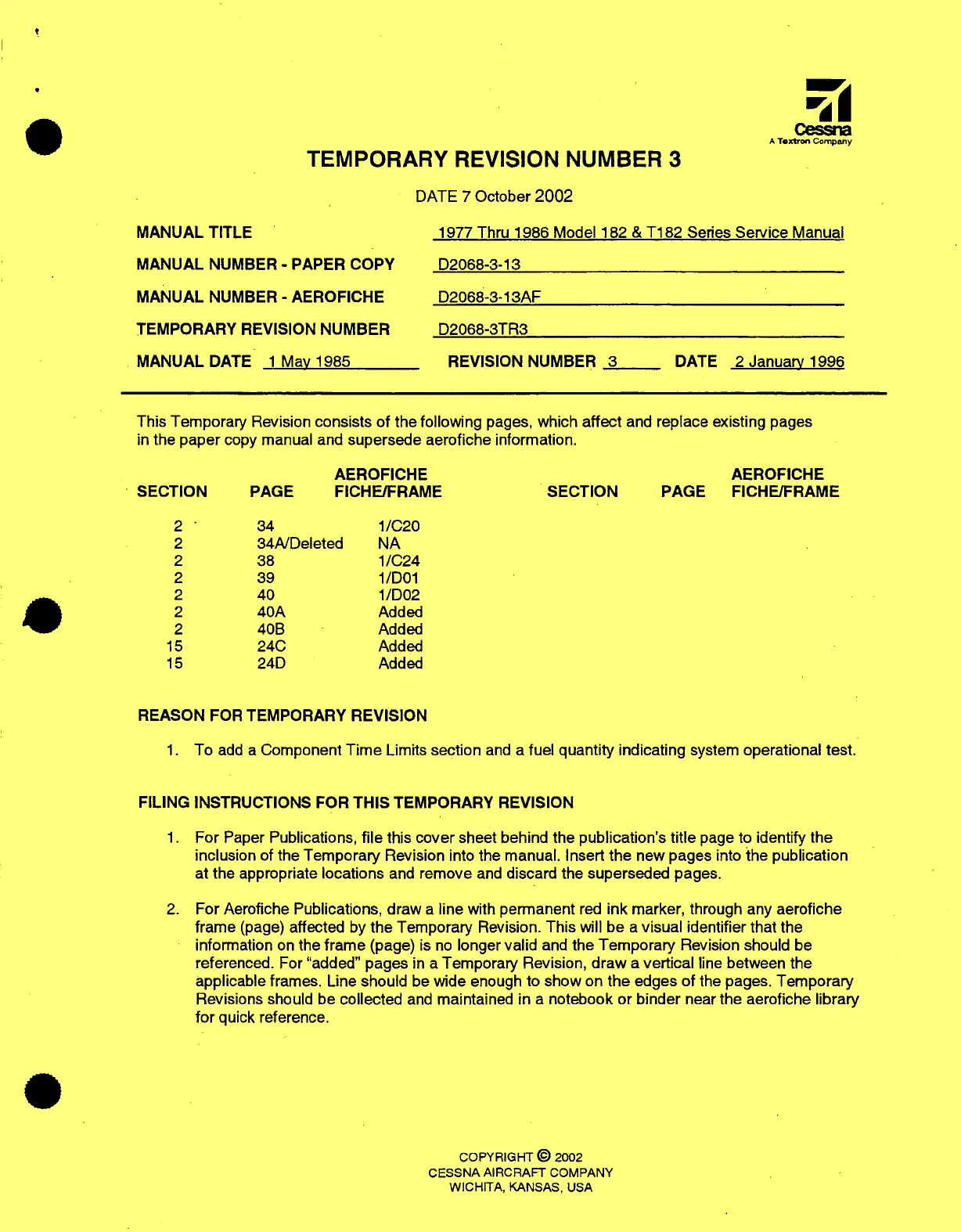 Temporary Revision. This
