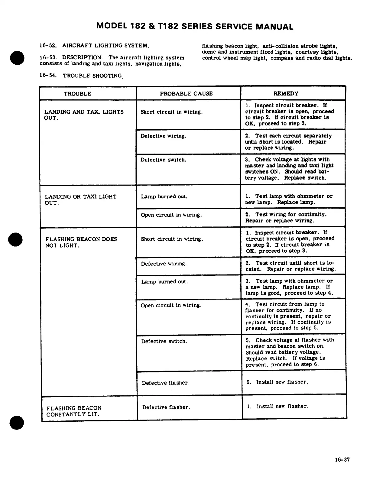 Cessna 182 1980 - Aircraft Lighting System