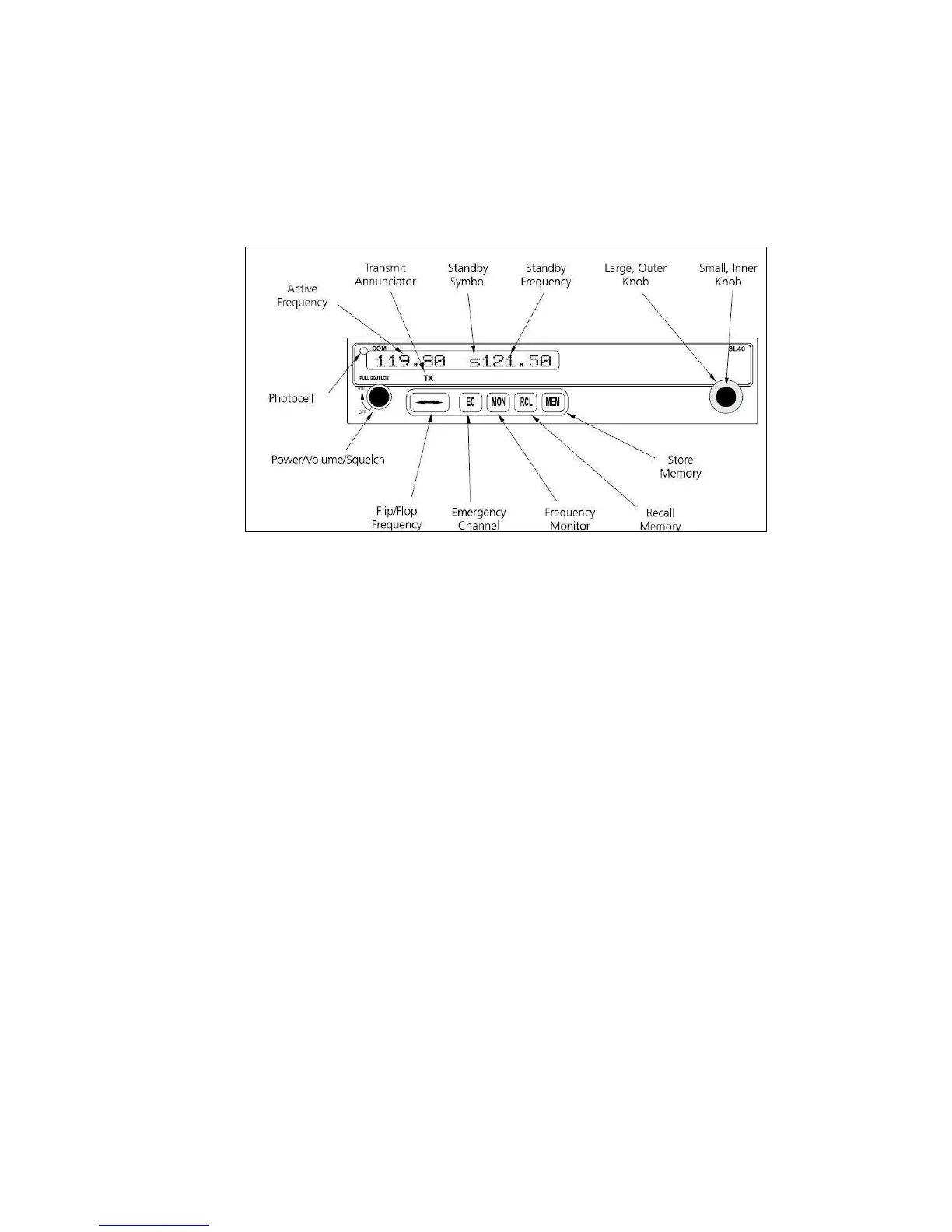 panel. Information on the key functions of the Garmin SL40 is incorporated into the Pilot’s