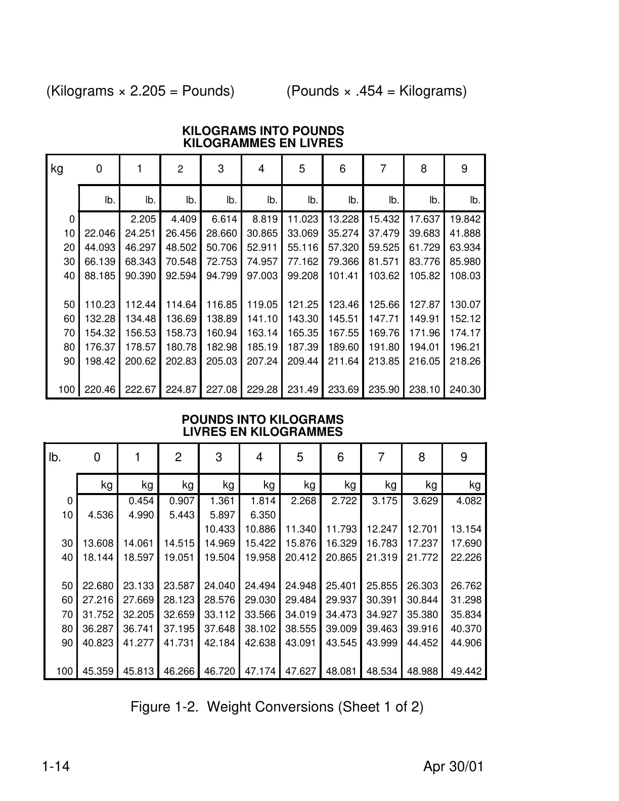 Figure 1-2. Weight Conversions (Sheet 1 of 2)