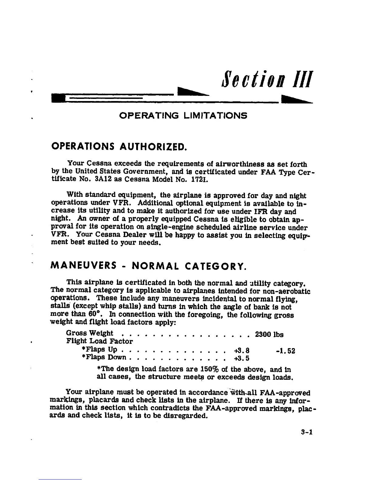 Cessna 1968 172 - Section III Operating Limitations; Authorized Operations; Normal Category Maneuvers