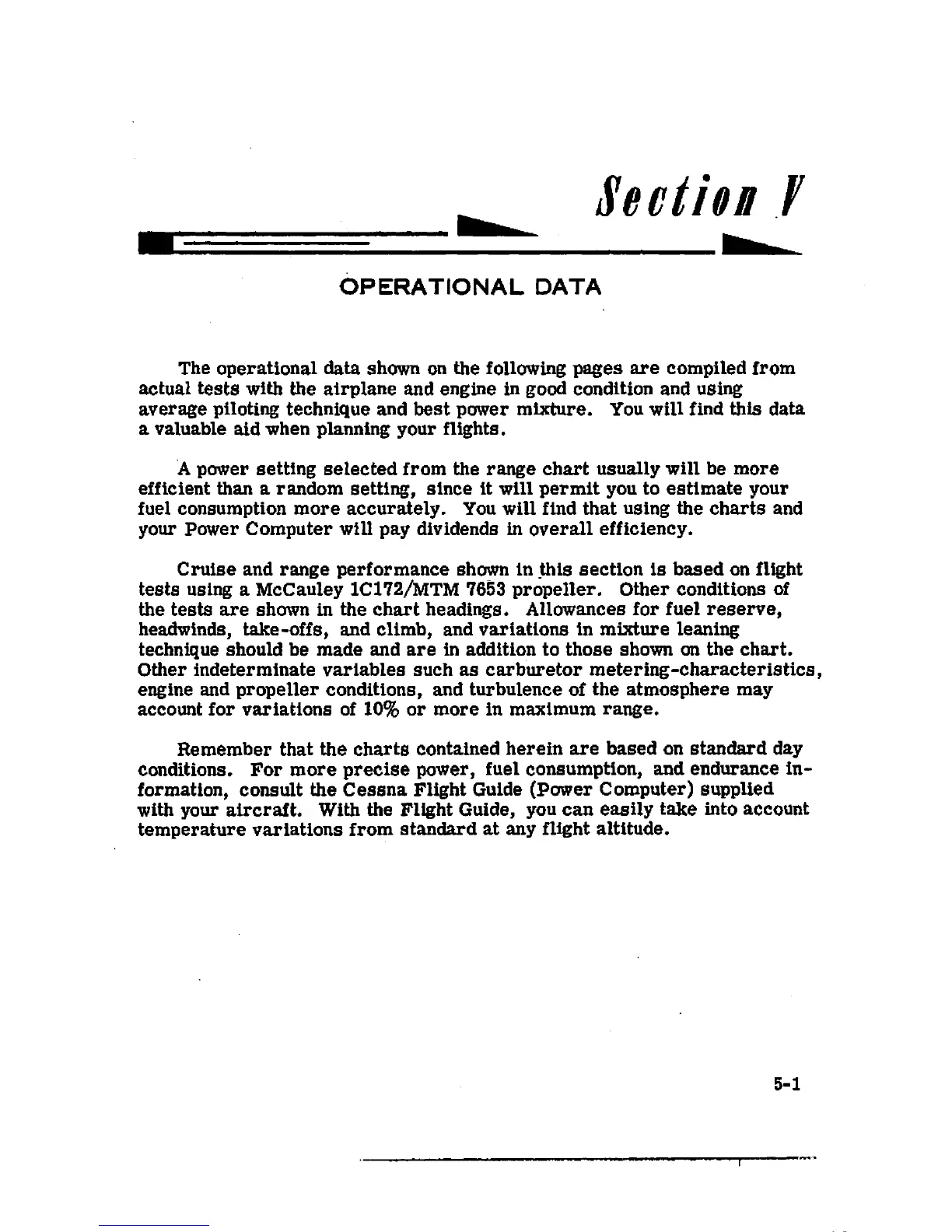 Cessna 1968 172 - Section V Operational Data