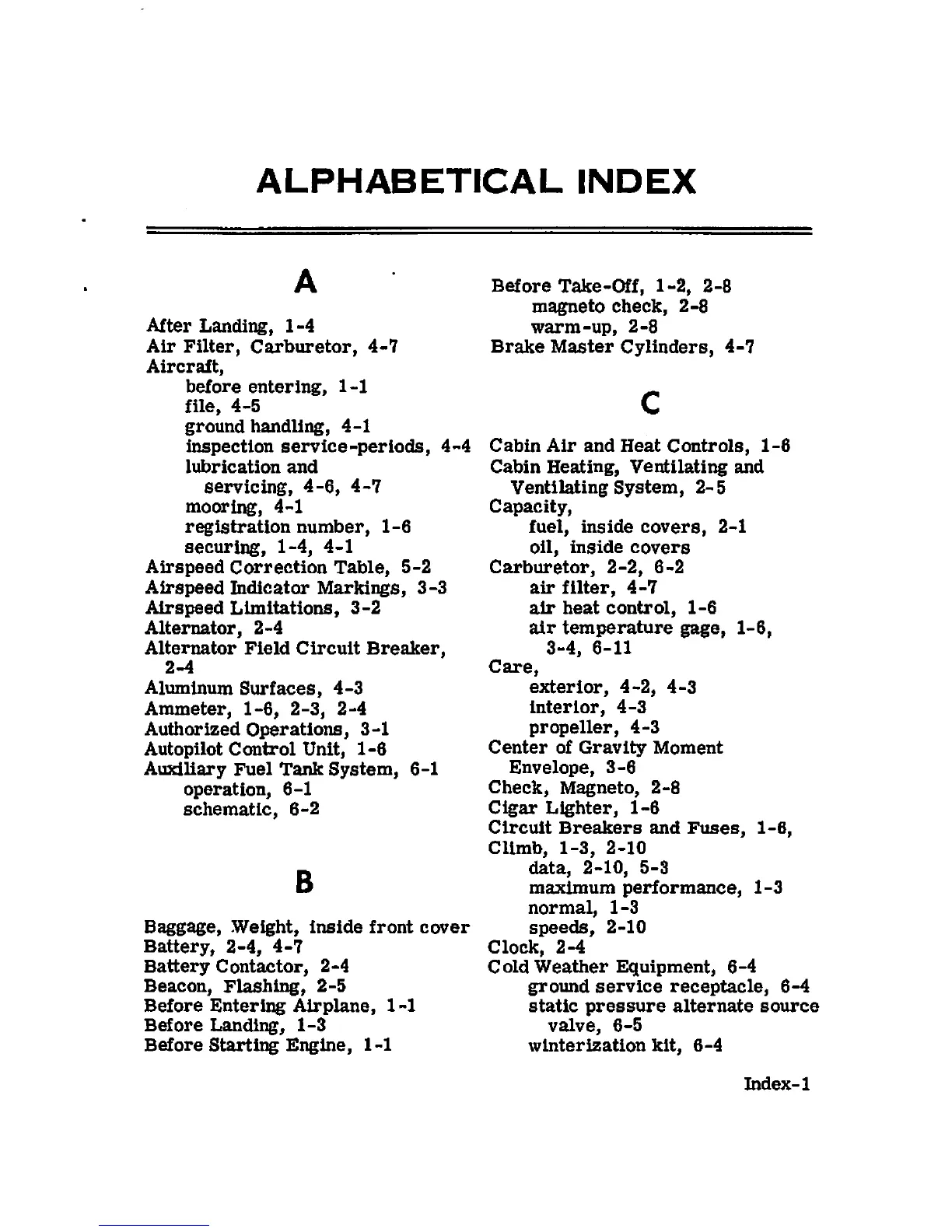 Cessna 1968 172 - Alphabetical Index