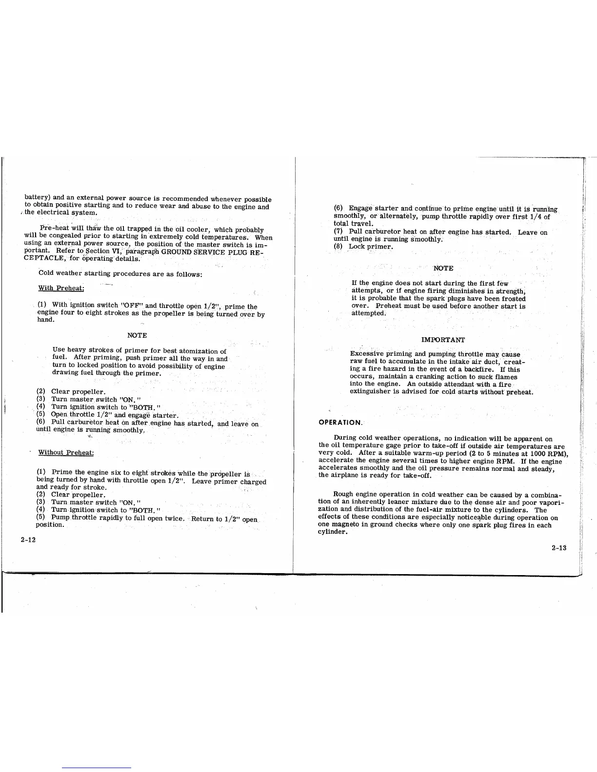 Cessna 1968 182 - With Preheat; Without Preheat; Operation