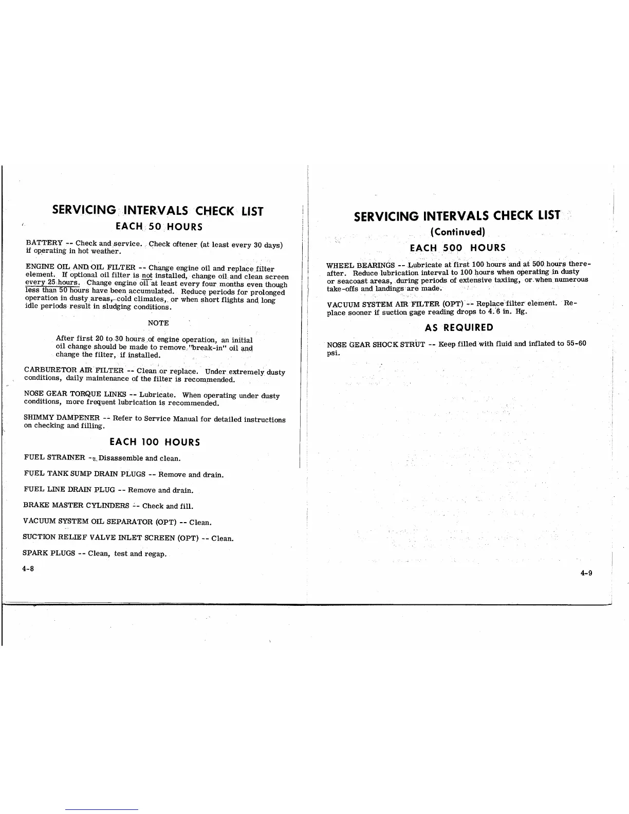 Cessna 1968 182 - Servicing Intervals Check List; 100-Hour Servicing