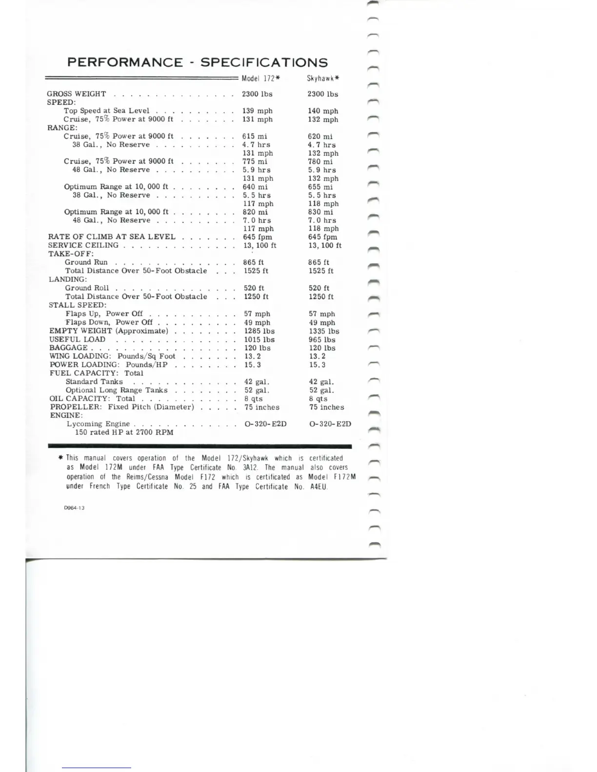 operation of the Model 172/Skyhawk which is certificated