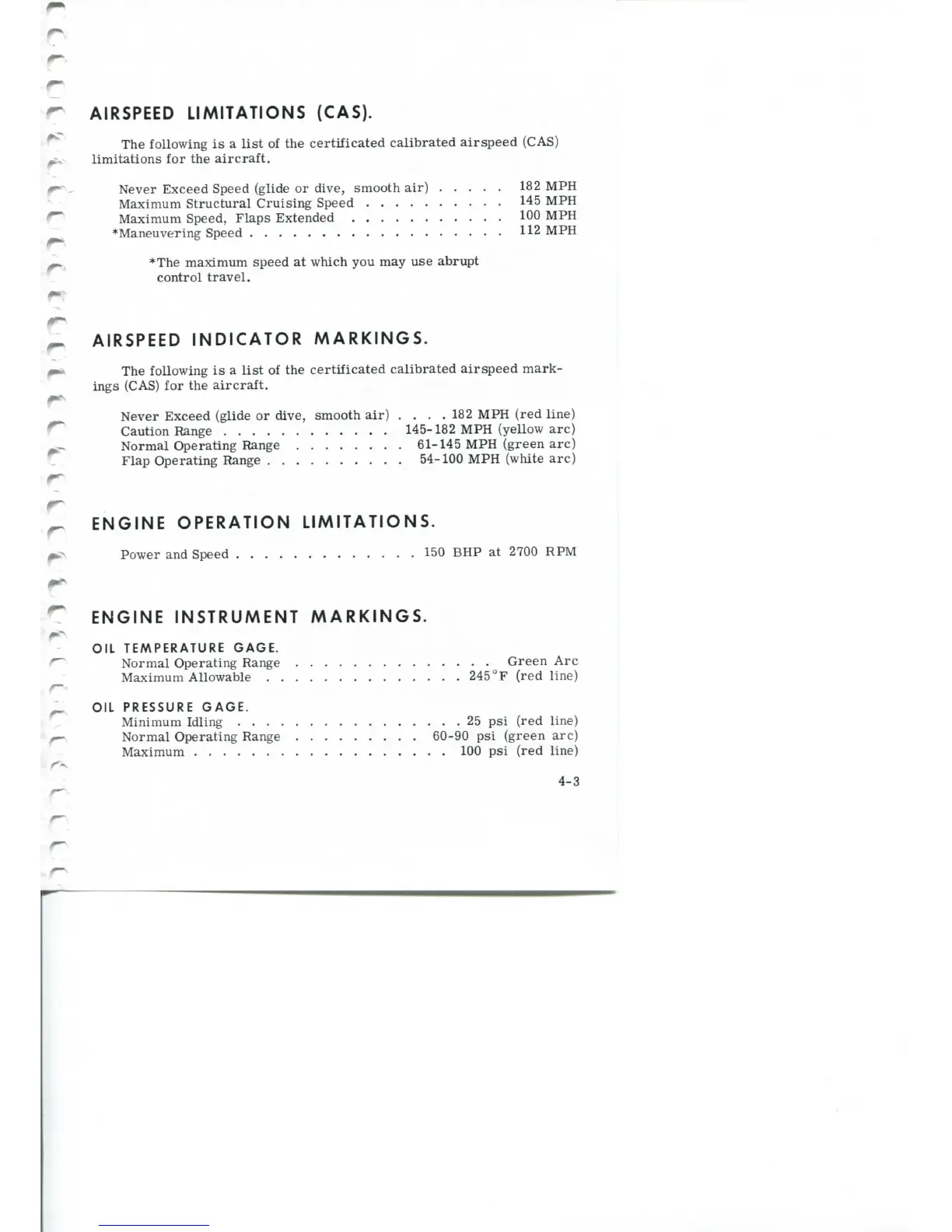 Cessna 1973 172 - Airspeed and Engine Limitations; Instrument Markings and Indicators