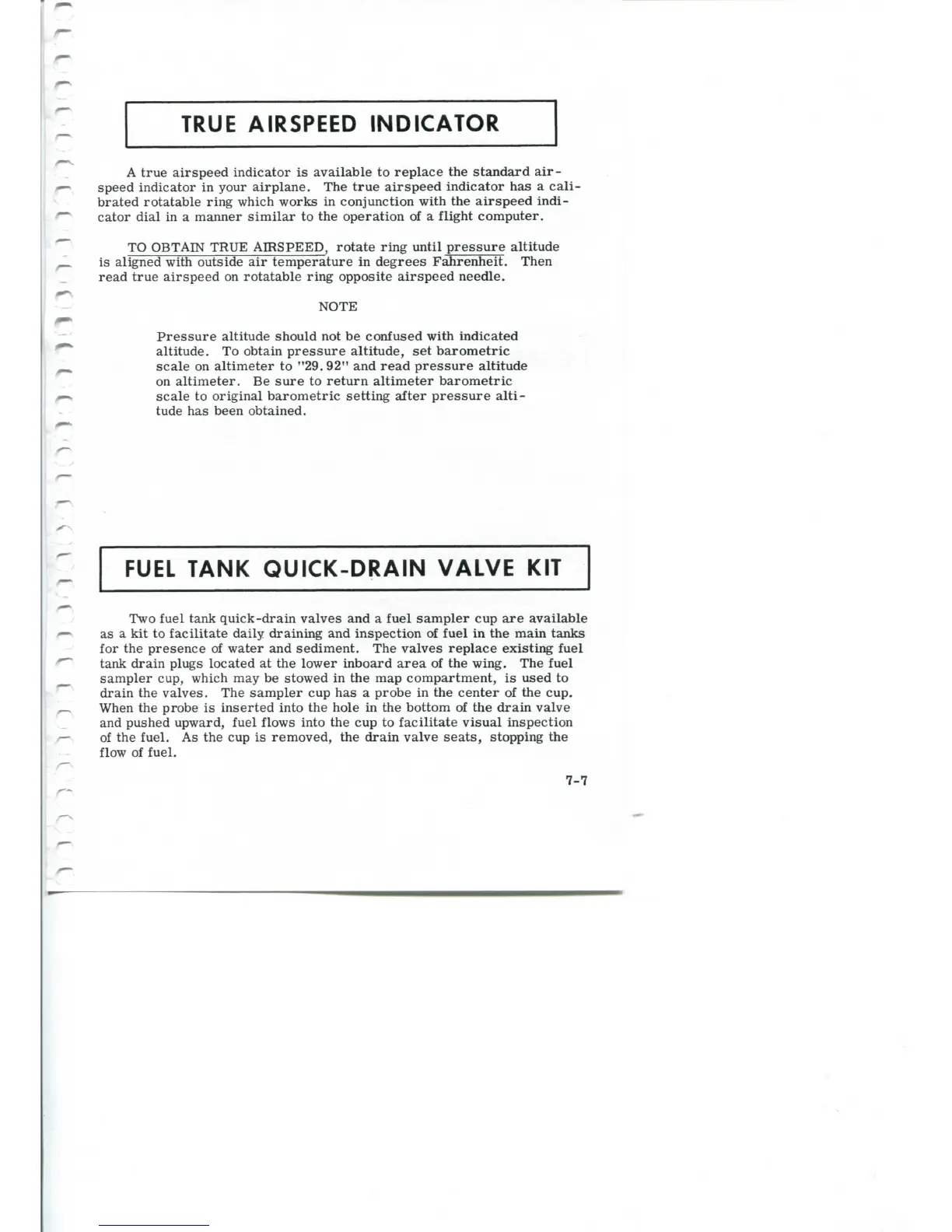 Two fuel tank quick-drain valves and a fuel sampler cup are available