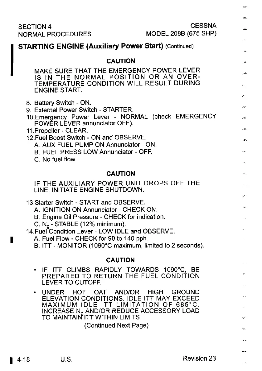 ELEVATION CONDITIONS, IDLE ITT MAY EXCEED