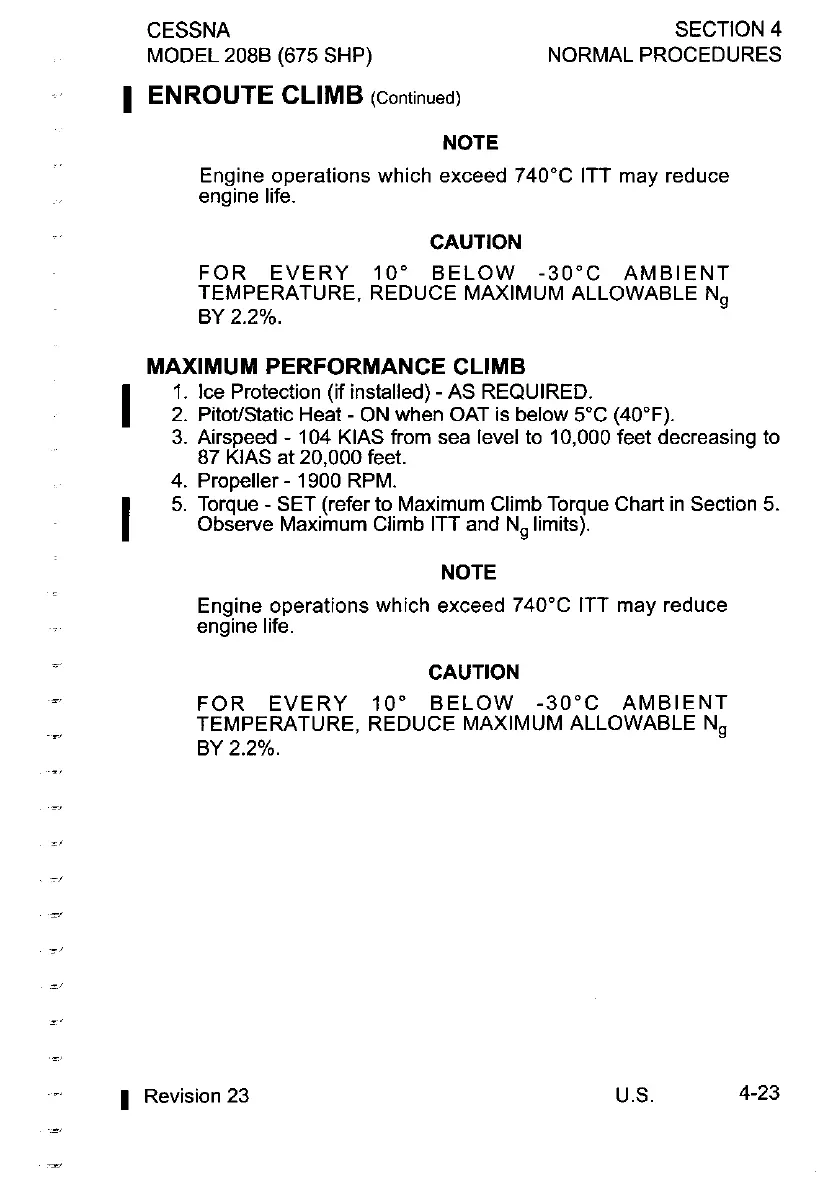 Observe Maximum Climb ITT and Ng limits).
