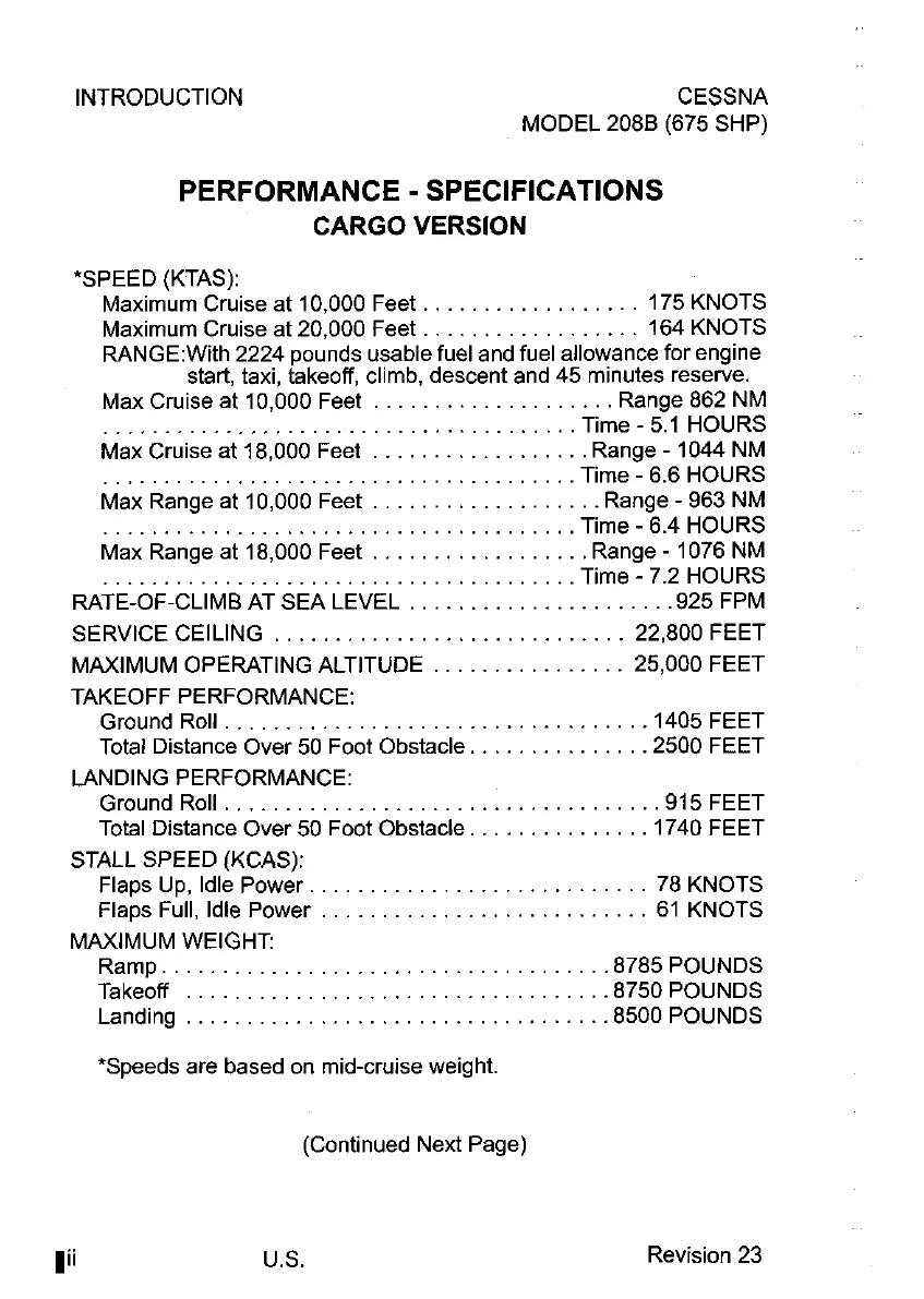 RANGE:With 2224 pounds usable fuel and fuel allowance for engine