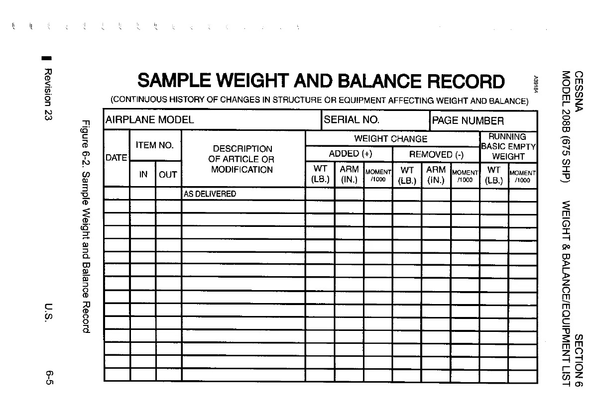 Cessna 208B - Sample Weight and Balance Record