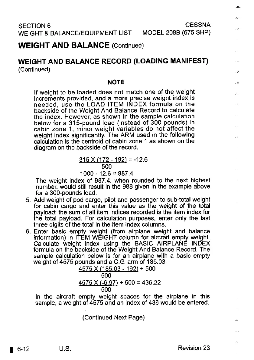 WEIGHT AND BALANCE RECORD (LOADING MANIFEST)