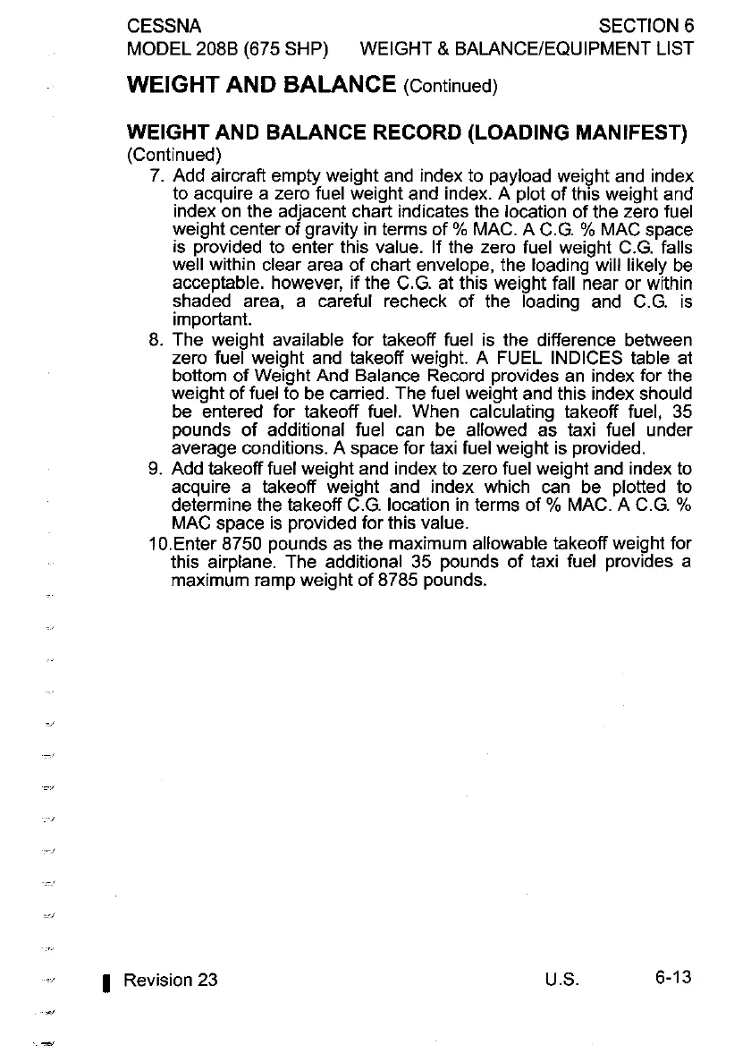 WEIGHT AND BALANCE RECORD (LOADING MANIFEST)