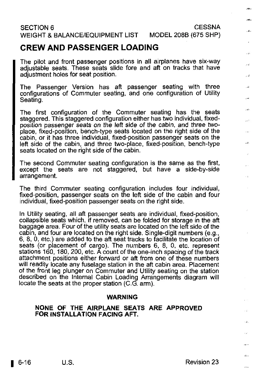 In Utility seating, all aft passenger seats are individual, fixed-position,