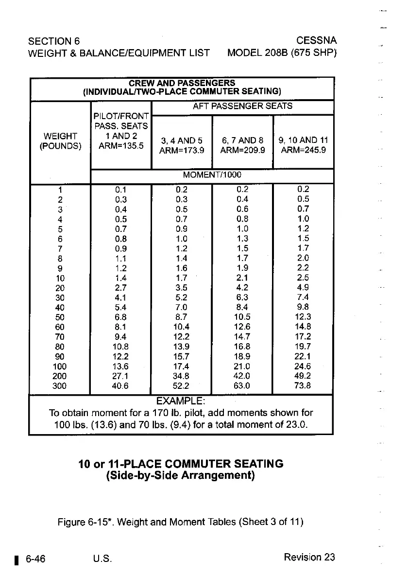 Figure 6-15'. Weight and Moment Tables (Sheet 3 of 11)