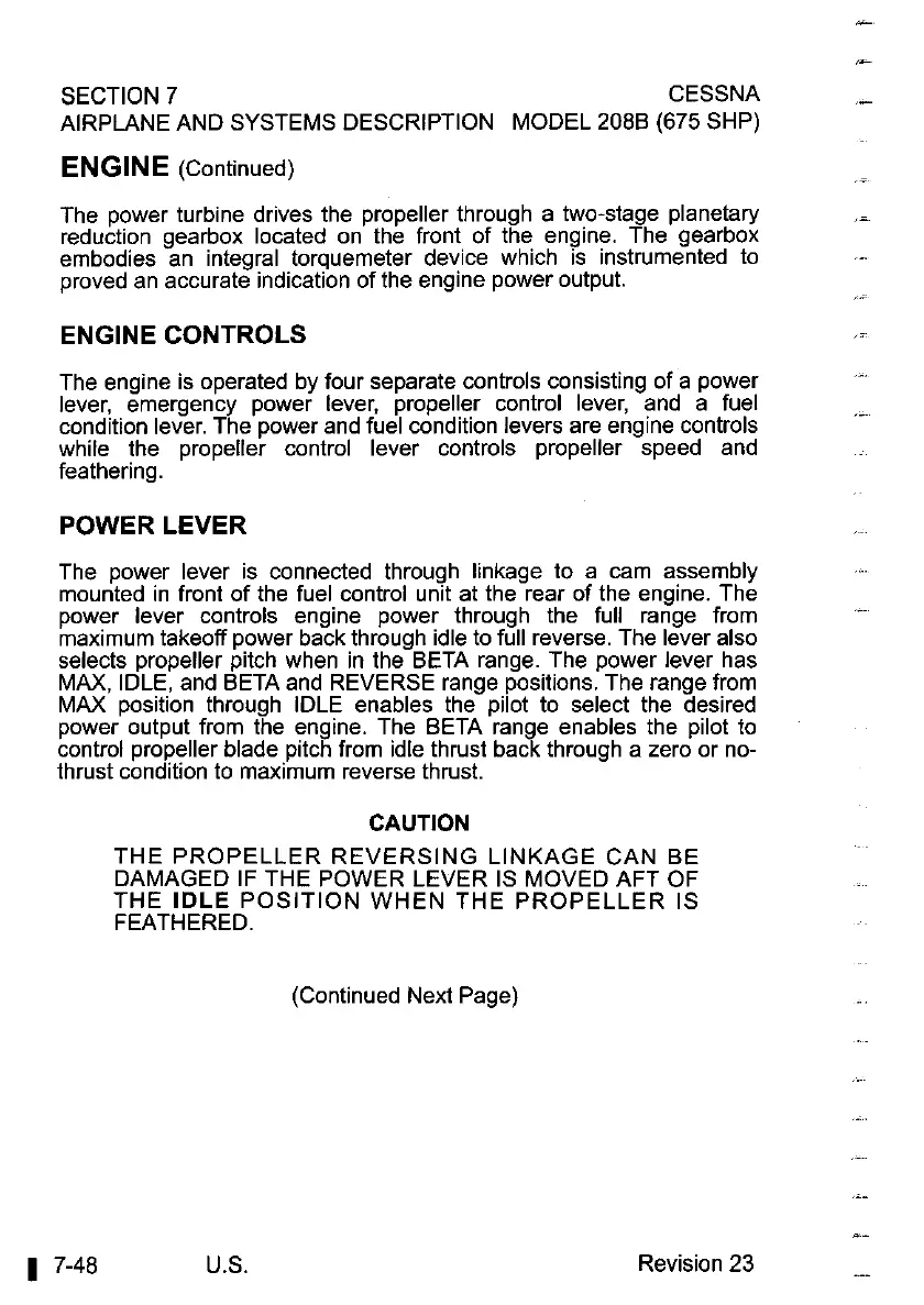 DAMAGED IF THE POWER LEVER IS MOVED AFT OF