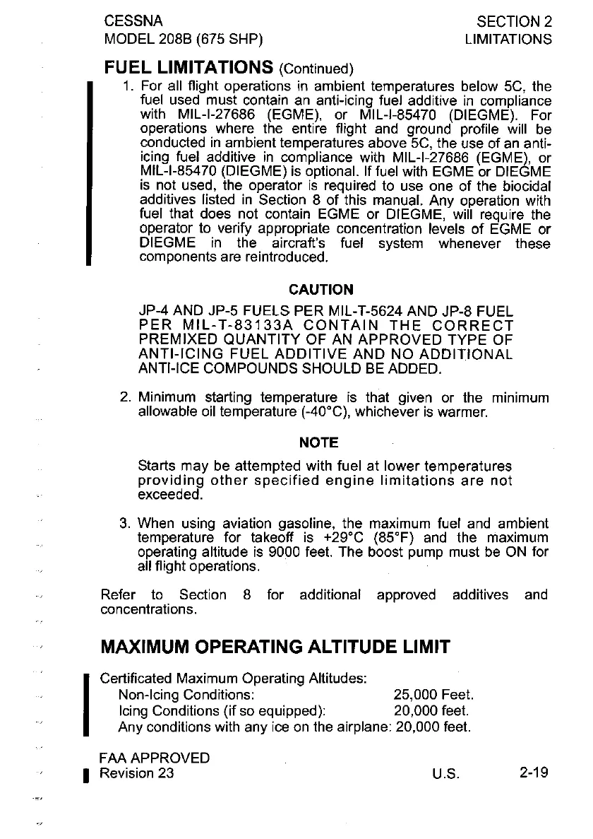 Icing Conditions (if so equipped): 20,000 feet.