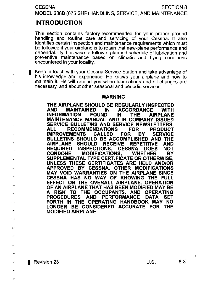 REQUIRED INSPECTIONS. CESSNA DOES NOT