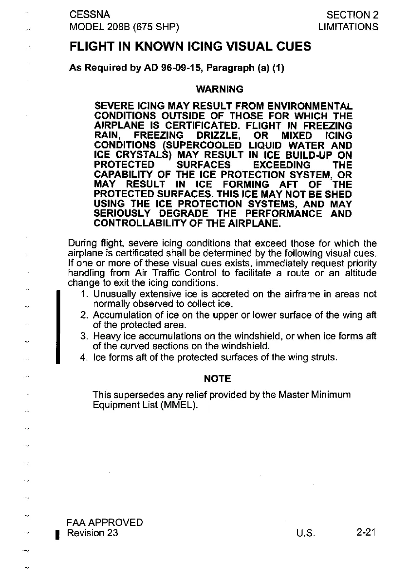 FLIGHT IN KNOWN ICING VISUAL CUES